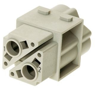 Han 100 A Modul, Doppelmodul, Crimpanschluss, Buchse, Kontakte: 2, Leiterquerschnitt: 10...35 mm², Bemessungsstrom: 100 A, Polycarbonat (PC), RAL 7032 (kieselgrau)