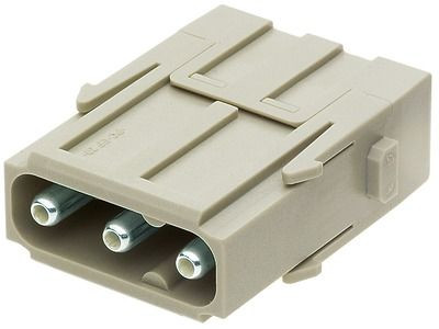 Han C Modul, Einzelmodul, Axialschraubanschluss, Stift, Kontakte: 3, Leiterquerschnitt: 2,5...8 mm², Bemessungsstrom: 40 A, Polycarbonat (PC), RAL 7032 (kieselgrau), Kupferlegierung, versilbert