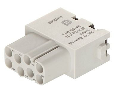 Han EE Modul, Einzelmodul, Han-Quick Lock Anschluss, Buchse, Kontakte: 8, Leiterquerschnitt: 0,25...1,5 mm², Bemessungsstrom: 16 A, Polycarbonat (PC), RAL 7032 (kieselgrau), Kupferlegierung, versilbert