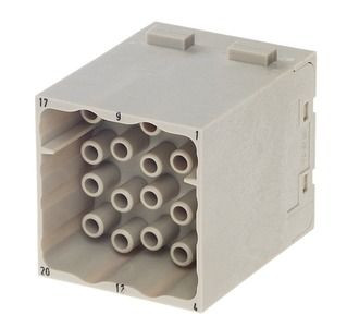 Han EEE Modul, Doppelmodul, Crimpanschluss, Stift, Kontakte: 20, Leiterquerschnitt: 0,14...4 mm², Bemessungsstrom: 16 A, Polycarbonat (PC), RAL 7032 (kieselgrau)