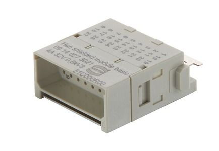 Han Shielded Modul basic, Einzelmodul, mit 180° Schirmelement, Crimpanschluss, Stift, Kontakte: 27 + Schirmung, Leiterquerschnitt: 0,09...0,52 mm², Bemessungsstrom: 4 A, Polycarbonat (PC), RAL 7032 (kieselgrau)