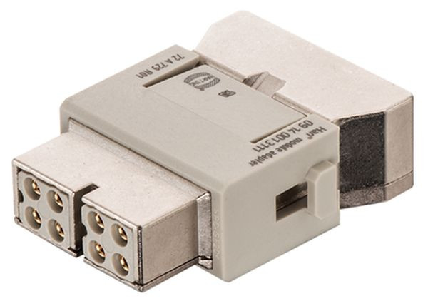 Han Megabit HMC Modul, Einsatz, 2x 4 Kontakte, ein Kabeleingang, Crimpanschluss, Buchse, Kontakte: 8 + Schirmung, Leiterquerschnitt: 0,14...2,5 mm², Bemessungsstrom: 10 A, Polycarbonat (PC), RAL 7032 (kieselgrau)