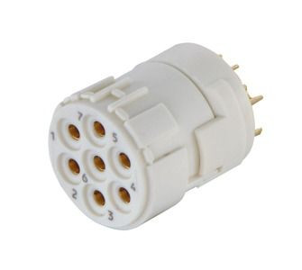 Einsätze, Lötanschluss, Buchse, Polyamid (PA), weiß, Bemessungsstrom: ?20 A, Kontakte: 7, Leiterquerschnitt: 2,5 mm² max., Kupferlegierung, vergoldet