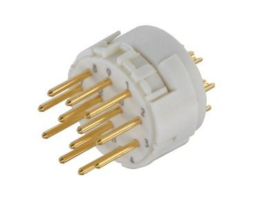 Einsätze, Lötanschluss, Stift, Polyamid (PA), weiß, Bemessungsstrom: ?8 A, Kontakte: 12, Leiterquerschnitt: 1 mm² max., Kupferlegierung, vergoldet