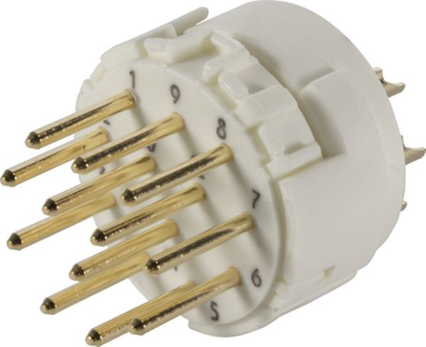Einsätze, Lötanschluss, Stift, Polyamid (PA), weiß, Bemessungsstrom: ?8 A, Kontakte: 12, Leiterquerschnitt: 1 mm² max., Kupferlegierung, vergoldet