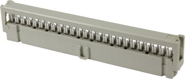 Federleiste, mit Kabelanschlag, Schneidklemmanschluss, Bemessungsstrom: 2,5 A, Thermoplastischer Formstoff (PBT), grau, Kontakte: 34, Anforderungsstufe: 2, nach IEC 60603-13, Kupferlegierung, Au über Ni steckseitig, Sn über Ni anschlussseitig