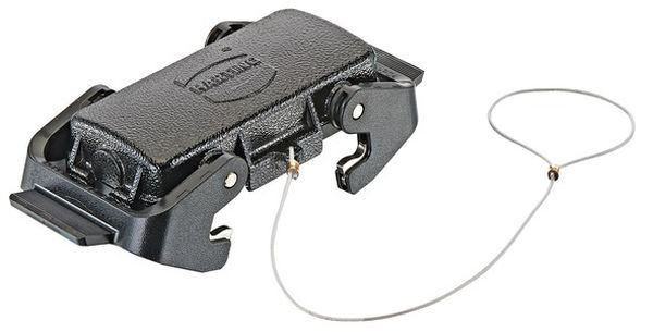 Abdeckkappe, für Tüllengehäuse, mit Befestigungsschnur, Baugröße: 16 B, Querbügel, Polycarbonat (PC), Edelstahl, Werkstoff Gehäuse: Metall, Werkstoff Dichtung: NBR, Schutzart: IP65