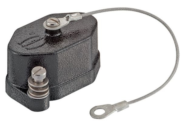 Abdeckkappe, für Anbaugehäuse, für Sockelgehäuse, mit Befestigungsschnur, Baugröße: 3 A, Bajonettverriegelung, Edelstahl, Werkstoff Gehäuse: Zink-Druckguss, pulverbeschichtet, RAL 9005 (tiefschwarz), Schutzart: IP65, IP68