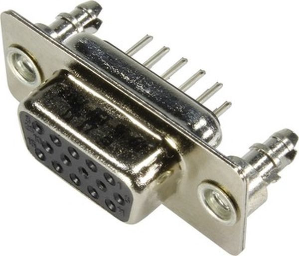 Steckverbinder, Wellenlötanschluss, Bemessungsstrom: ?2 A, Buchse, Baugröße: D-Sub 1, Thermoplastischer Formstoff, glasfaserverstärkt (PBTP), Shell: Stahl, vernickelt, schwarz, Kontakte: 15, Kupferlegierung, Edelmetall über Ni steckseitig, Sn über Ni anschlussseitig
