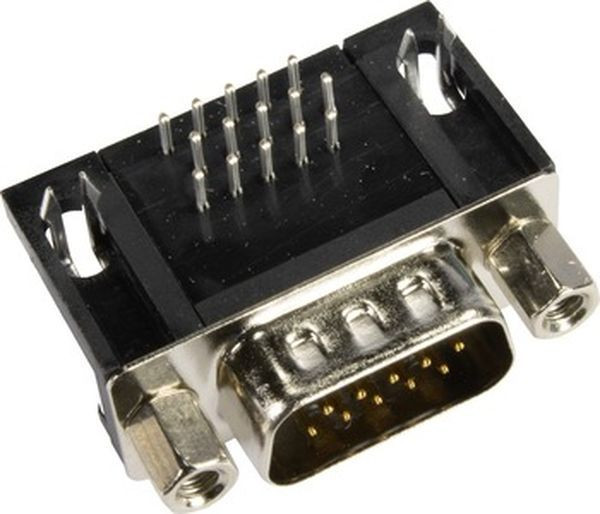 Steckverbinder, Wellenlötanschluss, Bemessungsstrom: ?2 A, Stift, Baugröße: D-Sub 1, Thermoplastischer Formstoff, glasfaserverstärkt (PBTP), Shell: Stahl, vernickelt, schwarz, Kontakte: 15, Kupferlegierung, Edelmetall über Ni steckseitig, Sn über Ni anschlussseitig