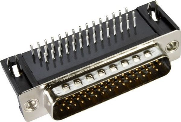 Steckverbinder, Wellenlötanschluss, Bemessungsstrom: ?2 A, Stift, Baugröße: D-Sub 3, Thermoplastischer Formstoff, glasfaserverstärkt (PBTP), Shell: Stahl, vernickelt, schwarz, Kontakte: 44, Kupferlegierung, Edelmetall über Ni steckseitig, Sn über Ni anschlussseitig
