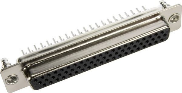 Steckverbinder, Wellenlötanschluss, Bemessungsstrom: ?2 A, Buchse, Baugröße: D-Sub 4, Thermoplastischer Formstoff, glasfaserverstärkt (PBTP), Shell: Stahl, vernickelt, schwarz, Kontakte: 62, Kupferlegierung, Edelmetall über Ni steckseitig, Sn über Ni anschlussseitig