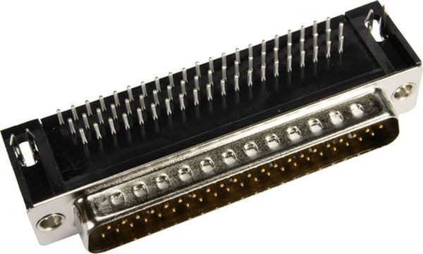 Steckverbinder, Wellenlötanschluss, Bemessungsstrom: ?2 A, Stift, Baugröße: D-Sub 4, Thermoplastischer Formstoff, glasfaserverstärkt (PBTP), Shell: Stahl, vernickelt, schwarz, Kontakte: 62, Kupferlegierung, Edelmetall über Ni steckseitig, Sn über Ni anschlussseitig