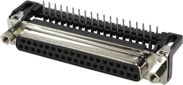 Steckverbinder, Wellenlötanschluss, Bemessungsstrom: ?6,5 A, Buchse, Baugröße: D-Sub 4, Thermoplastischer Formstoff, glasfaserverstärkt (PBTP), Shell: Stahl, oberflächenveredelt, schwarz, Kontakte: 37, Kupferlegierung, Edelmetall über Ni