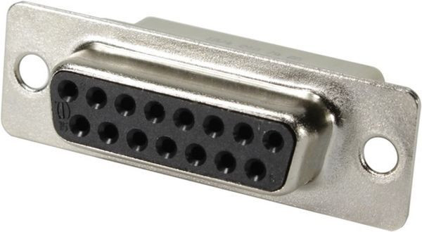 Steckverbinder, Crimpanschluss, Buchse, Baugröße: D-Sub 2, Thermoplastischer Formstoff, glasfaserverstärkt (PBTP), Shell: Stahl, oberflächenveredelt, schwarz, Kontakte: 15, Leiterquerschnitt: 0,09...0,82 mm²