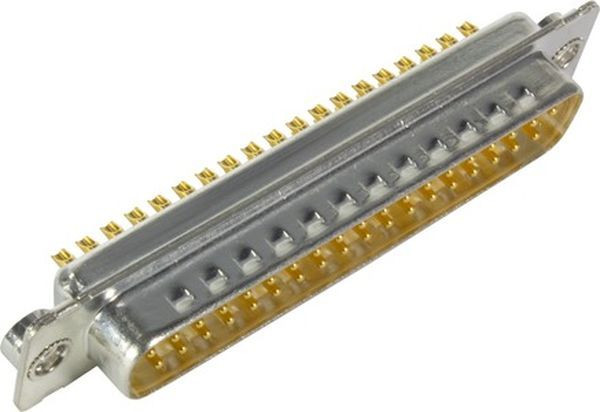 Steckverbinder, Lötkelchanschluss, Bemessungsstrom: ?7,5 A, Stift, Baugröße: D-Sub 4, Thermoplastischer Formstoff, glasfaserverstärkt (PBTP), Shell: Stahl, verzinnt, weiß, Kontakte: 37, Leiterquerschnitt: 0,5 mm², Kupferlegierung, Edelmetall über Ni steckseitig, Sn über Ni anschlussseitig
