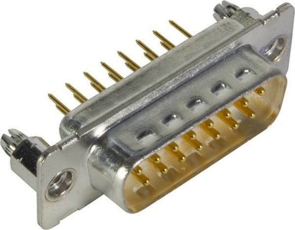 Steckverbinder, Wellenlötanschluss, Bemessungsstrom: ?7,5 A, Stift, Baugröße: D-Sub 2, Thermoplastischer Formstoff, glasfaserverstärkt (PBTP), Shell: Stahl, verzinnt, weiß, Kontakte: 15, Kupferlegierung, Edelmetall über Ni steckseitig, Sn über Ni anschlussseitig
