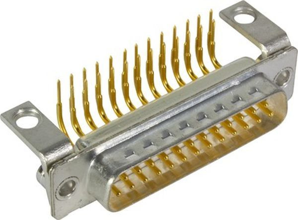 Steckverbinder, Wellenlötanschluss, Bemessungsstrom: ?7,5 A, Stift, Baugröße: D-Sub 3, Thermoplastischer Formstoff, glasfaserverstärkt (PBTP), Shell: Stahl, verzinnt, weiß, Kontakte: 25, Kupferlegierung, Edelmetall über Ni steckseitig, Sn über Ni anschlussseitig