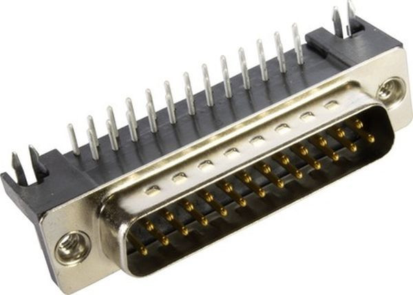 Steckverbinder, U.S. Footprint, Wellenlötanschluss, Bemessungsstrom: ?6,5 A, Stift, Baugröße: D-Sub 3, Thermoplastischer Formstoff, glasfaserverstärkt (PBTP), Shell: Stahl, oberflächenveredelt, schwarz, Kontakte: 25 mit Massekontakt, Kupferlegierung, Edelmetall über Ni