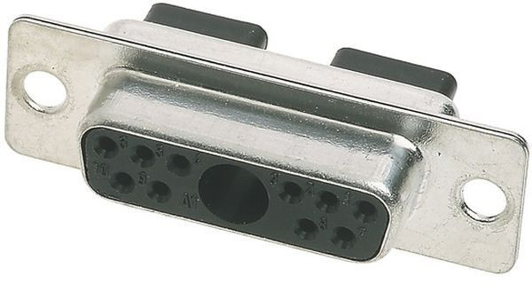 Steckverbinder, Crimpanschluss, Bemessungsstrom: ?5 A, Buchse, Baugröße: D-Sub 2, Thermoplastischer Formstoff, glasfaserverstärkt (Polyester), Shell: Stahl, verzinnt, schwarz, Kontakte: 11