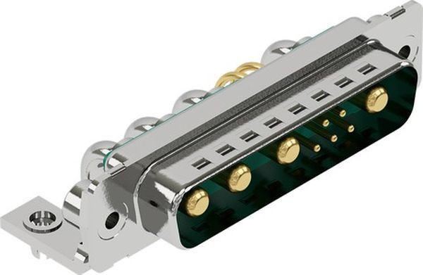 Steckverbinder, Wellenlötanschluss, Bemessungsstrom: 5 A, Stift, Baugröße: D-Sub 3, Thermoplastischer Formstoff, glasfaserverstärkt (PBT), Shell: Stahl, verzinnt, grün, Kontakte: 9, Kupferlegierung, vergoldet steckseitig, Sn über Ni anschlussseitig