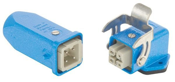 | Kurzbeschreibung | Steckverbinder-Sets, Komplettset, Han-Quick Lock Anschluss, Bemessungsstrom: 5 A, Kontakte: 4, Baugröße: 3 A, Längsbügel, gerader Kabeleingang |