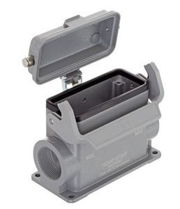 | Kurzbeschreibung | Sockelgehäuse, mit Metallkappe, Baugröße: 16 B, hohe Bauform, Längsbügel, Polycarbonat (PC), Edelstahl, seitlicher Kabeleingang, 2x M32 |