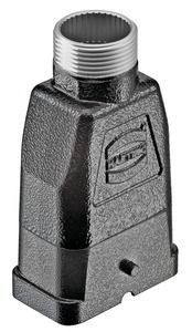 Tüllengehäuse, für Han-Compact Halbverschraubung, mit separater PE-Klemmstelle, für alle Kontakteinsätze der Baugröße Han-Compact, Baugröße: Han-Compact, Längsbügel, gerader Kabeleingang, 1x M25, Werkstoff Gehäuse: Zink-Druckguss, pulverbeschichtet, RAL 9005 (tiefschwarz)