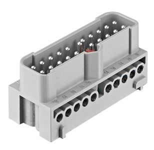 | Kurzbeschreibung | Einsätze, Schraubanschluss, Stift, Polycarbonat (PC), RAL 7032 (kieselgrau), Bemessungsstrom: 16 A, Baugröße: 16 B, Kontakte: 20 |