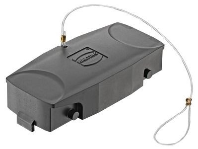 Abdeckkappe, für Anbaugehäuse, für Sockelgehäuse, für Kupplungsgehäuse, mit Befestigungsschnur (Schlaufe), Baugröße: 24 B, Querbügel, Werkstoff Gehäuse: Polyamid (PA), glasfaserverstärkt, RAL 9005 (tiefschwarz), Schutzart: IP65