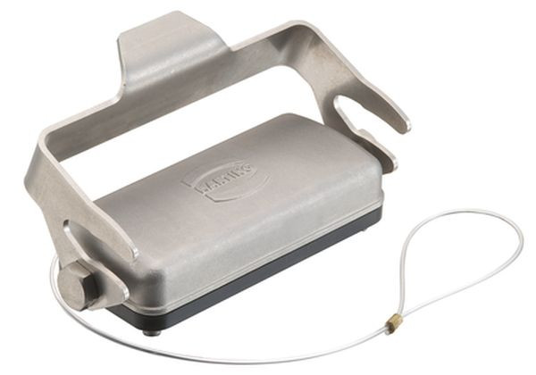 Abdeckkappe, für Tüllengehäuse, Metall, mit Befestigungsschnur (Schlaufe), Baugröße: 10 B, Längsbügel, Edelstahl, Werkstoff Dichtung: FPM, Schutzart: IP65