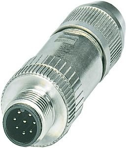 Kabelsteckverbinder, gerade, Stift, A-Kodierung, Schneidklemmanschluss, Polyamid (PA), Kontakte: 8, Messing Au über Ni steckseitig, Leiterquerschnitt: 0,14 ... 0,34 mm², Bemessungsstrom: ?2 A, Zink-Druckguss, Schraubverriegelung, Schutzart: IP65 / IP67 im gesteckten Zustand