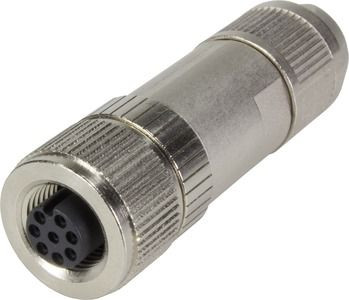 Kabelsteckverbinder, gerade, Buchse, A-Kodierung, Schneidklemmanschluss, Polyamid (PA), Kontakte: 8, Messing Au über Ni steckseitig, Leiterquerschnitt: 0,14 ... 0,34 mm², Bemessungsstrom: ?2 A, Zink-Druckguss, Schraubverriegelung, Schutzart: IP65 / IP67 im gesteckten Zustand