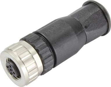 Kabelsteckverbinder, gerade, Buchse, A-Kodierung, Schraubanschluss, Polyamid (PA), Kontakte: 5, Messing Au über Ni steckseitig, Leiterquerschnitt: 1,5 mm² max., Bemessungsstrom: ?7,5 A, Polyamid (PA), Zink-Druckguss, Schraubverriegelung, Schutzart: IP67 im gesteckten Zustand