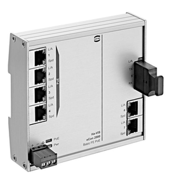 Industrial Ethernet Switches, unmanaged, Fast Ethernet, Nennspannung: 48, 54, Gesamtzahl der Ports: 7, 10/100 Mbit/s (RJ45-Ports): 6, 100 Mbit/s (SC-Ports): 1, Betriebstemperatur: -40 ... +70 °C