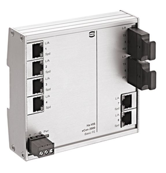 Industrial Ethernet Switches, unmanaged, Fast Ethernet, Nennspannung: 24, 48, Gesamtzahl der Ports: 8, 10/100 Mbit/s (RJ45-Ports): 6, 100 Mbit/s (SC-Ports): 2, Betriebstemperatur: -40 ... +70 °C
