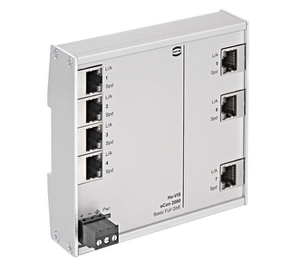 Industrial Ethernet Switches, unmanaged, Full Gigabit Ethernet, Nennspannung: 24, 48, Gesamtzahl der Ports: 7, 10/100/1000 Mbit/s (RJ45-Ports): 7, Betriebstemperatur: 0 ... +55 °C