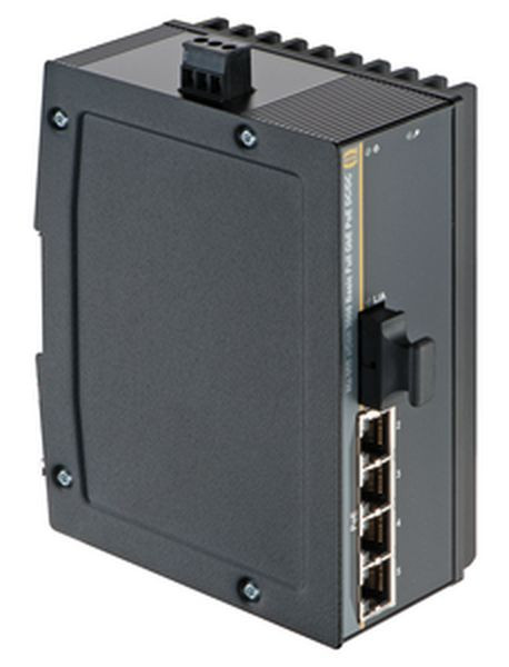 Industrial Ethernet Switches, unmanaged, Full Gigabit Ethernet, Nennspannung: 24 V DC, Gesamtzahl der Ports: 5, 10/100/1000 Mbit/s (RJ45-Ports): 4, 1000 Mbit/s (SC-Ports, LX): 1, Betriebstemperatur: -40 ... +70 °C
