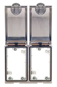 Einbaurahmen, zweifach, Metallausführung, matt vernickelt (elektrisch leitend), Metalldeckel, matt vernickelt, Zink-Druckguss