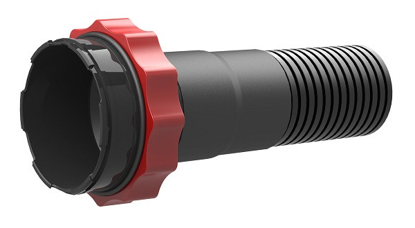 Systemdeckel mit Kaltschrumpftechnik für gewellte Kabelschutzrohre HSI150 D1x110 KS WR, zum Einsatz in Dichtpackung und Kunststoffflansch HSI150, zur Anbindung von gewellten Kabelschutzrohren, die Kaltschrumpfmuffen bieten einen großen Anwendungsbereich und werden werkzeuglos vom Systemdeckelstutzen auf die Kabel geschrumpft, besonders schonend für dünnwandige bzw. temperaturempfindliche Rohre, Lieferumfang inklusive Kaltschrumpfschlauch, FHRK-zertifiziert, mechanische Fixierung (Bajonett) und Abdichtung (Spannmutter) wirken unabhängig, Bajonettsystem mit Rücksperre und Konterverschraubung (Sicherung gegen selbstständiges Öffnen), gas- und wasserdicht bis 0,5 bar, Rohrdurchmesser 110 mm