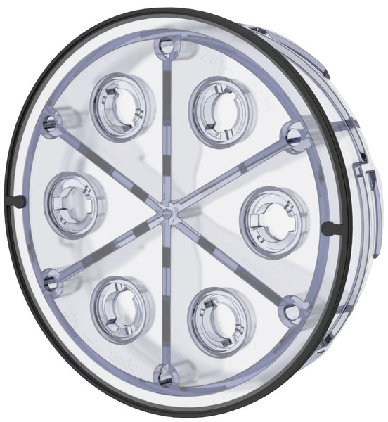 Transparenter Verschlussdeckel zum druckdichten Verschluss für nicht belegte Dichtpackungen und Kunststoffflansche, geprüft nach FHRK-Prüfgrundlage mit FHRK-Qualitätssiegel, der Verschlussdeckel besteht aus ABS, die Dichtung ist aus TPE, die Dichtung gewährleistet eine gas- und wasserdichte Abdichtung, macht anstehendes Wasser im angeschlossenen Kabelschutzrohrsystem direkt ersichtlich, integrierte Sollbruchstelle als Anschlussmöglichkeit für einen Ablaufhahn