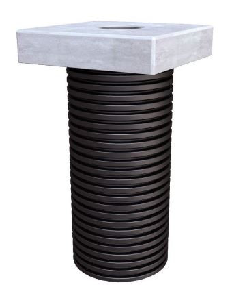1 Stück ULF mit Blindverschlussdeckel, Größe Fundamentplatte: 470 mm x 470 mm, Höhe Fundamenplatte: 100 mm, Fundamentplatte: Polymerbeton, Fundamentplatte Öffnung: 110 mm, Fundamentrohr Øi: 300 mm, Gesamtlänge: 850