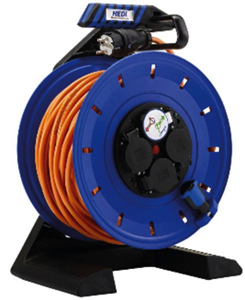 Vollkunststoff-Kabeltrommel HEDI Generation 7 Champion Trommelkörper und Tragegestell aus robusten Kunststoffen für ein Höchstmaß an Sicherheit. Mit ergonomisch geformtem Tragegriff und großem, ausklappbaren Drehgriff mit Zwei-Komponenten Soft-Touch für mehr Anwender-Komfort, Kabelführung sowie dem bewährten HEDI Rotationsstoppschalter zur Arretierung des Trommelkörpers. Mit 33 m HEDI Panzerkabel PLUS H07BQ-F 3G2,5, orange, Ø 290 mm, spritzwassergeschützter Steckdoseneinsatz mit 4 Schuko-Steckdosen 250 V, Stecker-Dichtungslippe, HEDI Diagnosesystem DiagS und Thermoschutzschalter, Schutzart: IP44. Der Artikel ist gemäß den geltenden Normen zugelassen und entspricht den Vorgaben gemäß der DGUV-I 203-005, K2 sowie der DGUV-I 203-006 für den ständigen Einsatz auf Bau- und Montagestellen.