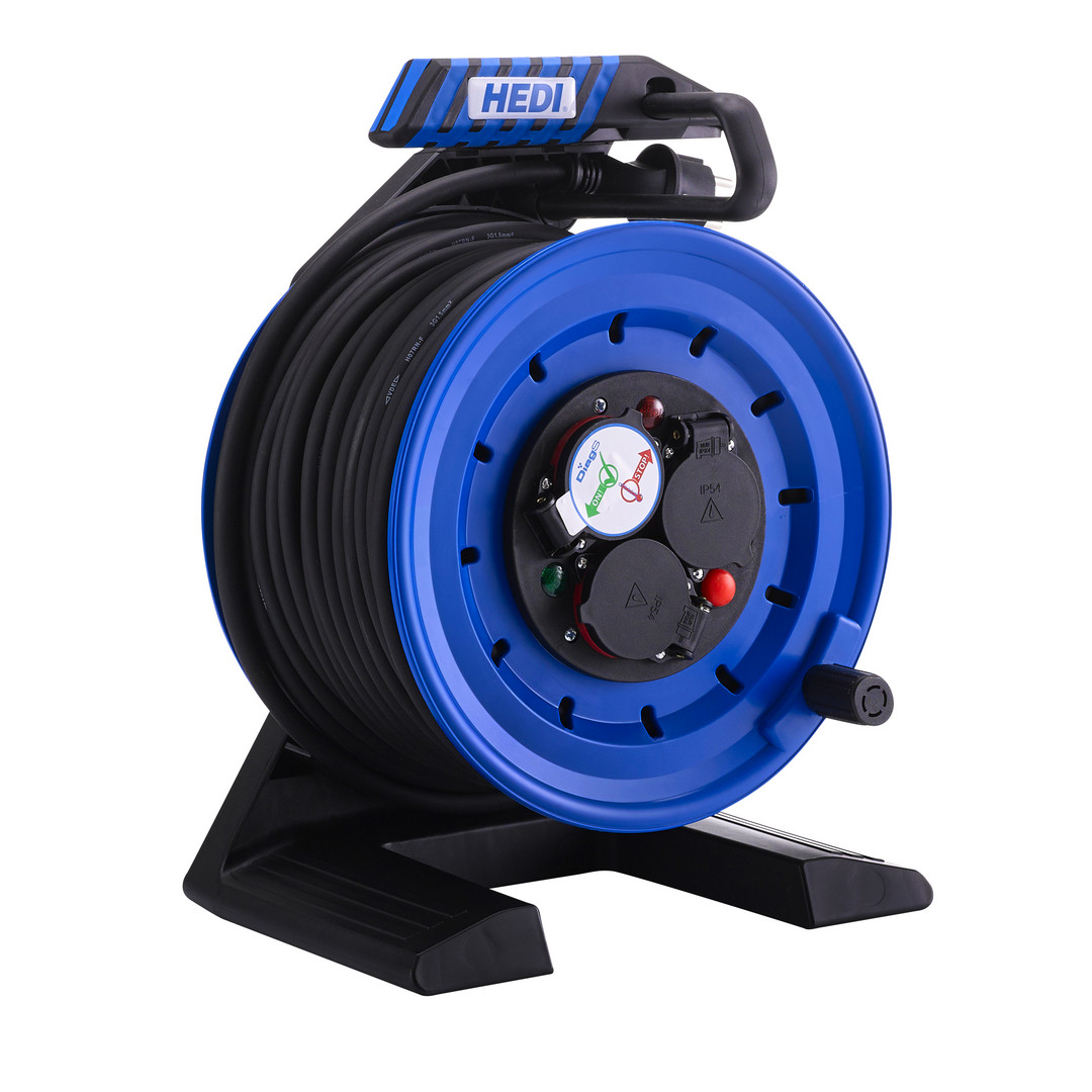 Vollkunststoff-Kabeltrommel Generation 7 Companion (Kabeltrommel-ø 250 mm, 25 m Neopren-Gummi Leitung, spritzwassergeschützte 3-fach Schutzkontakt-Steckdose 250 V)
