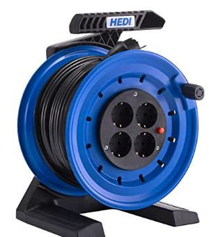 Vollkunststoff-Kabeltrommel Generation 7 Coworker (Kabeltrommel-ø 250 mm, 50 m PVC-Leitung H05VV-F 3G1,5 in schwarz, 4-fach Schutzkontakt-Steckdose 250 V mit Thermoschutzschalter)