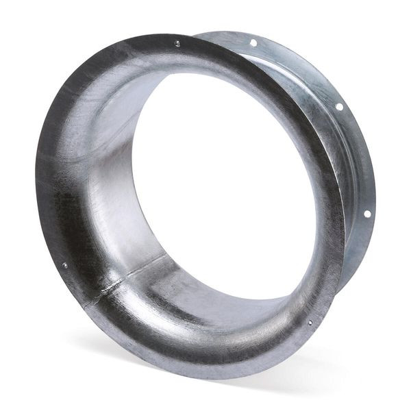Ansaugdüse mit großem Einlaufradius aus Stahlblech gedrückt, feuerverzinkt. Anschlussseitig Flansch mit Lochbild nach DIN 24155.