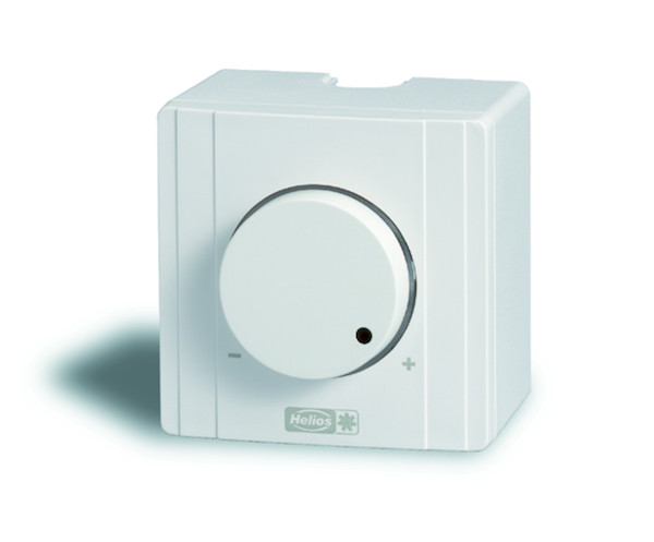 AP-Drehzahlsteller mit Wendeschalter für reversierbare Ventilatoren (Be- und Entlüftung) in weißem Kunststoffgehäuse. Nur für Ventilatoren, die mittels Wechselschalter reversierbar sind (z.B. HVR 150/2 RE, REW 150 und 200). Mindestbelastung 0,15 A.