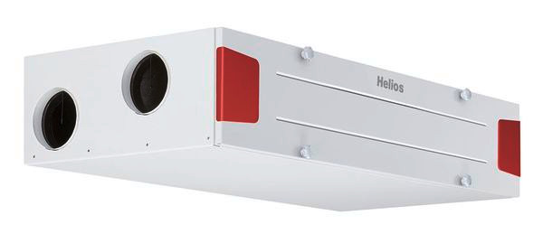 Extrem flaches Deckengerät mit Wärmerückgewinnung für die zentrale Be- und Entlüftung von Geschosswohnungen und kleinen Einfamilienhäusern. Ausgestattet mit Helios easyControls, dem innovativen Steuerungskonzept für einfachste Netzwerkanbindung und Webbrowser-Bedienung.
