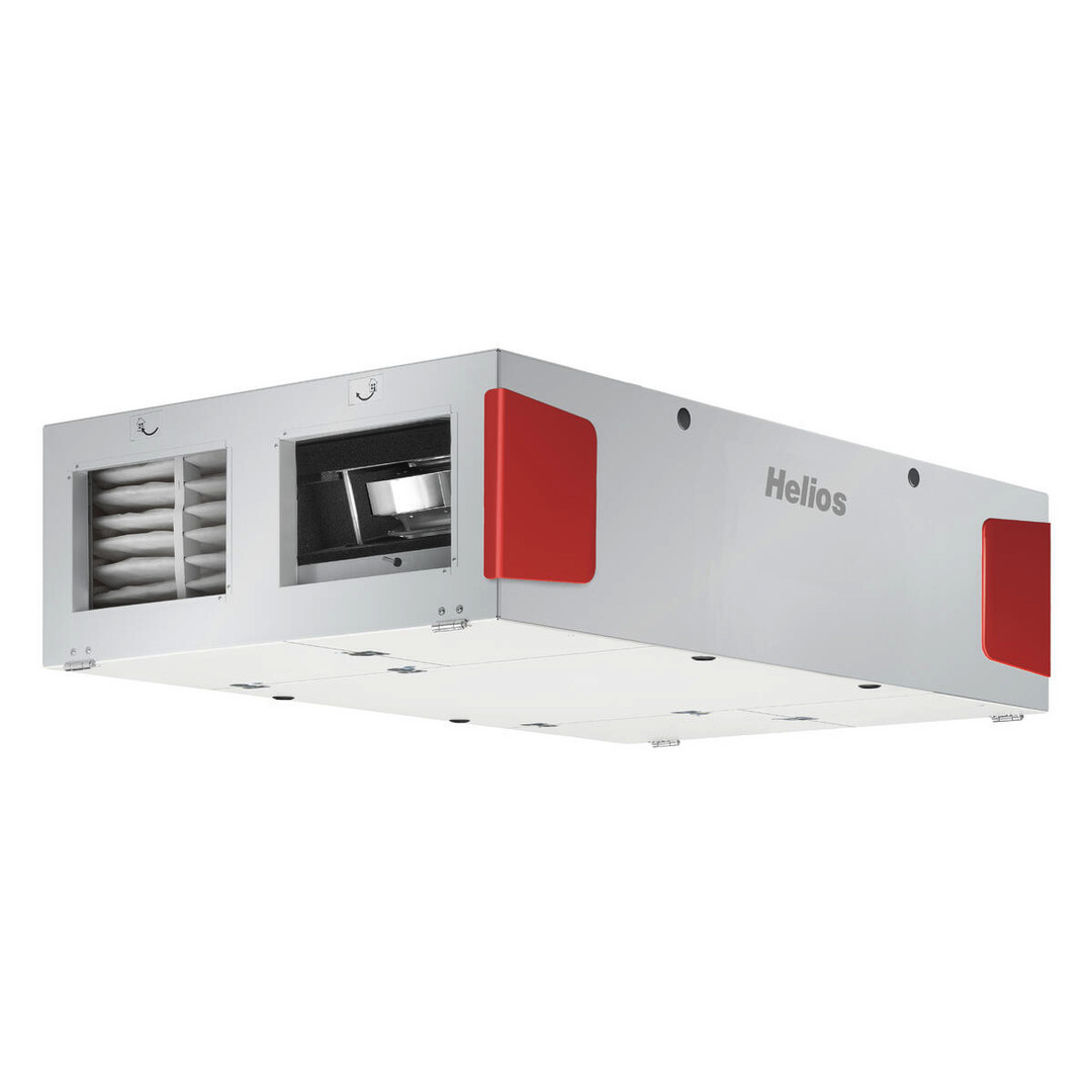 Lüftungsgerät mit Passivhauszulassung und Wärmebereitsstellungsgrad über 79%. Mit Kreuzgegenstromwärmetauscher inkl. stufenlosem Sommerbypass mit 100% WT Abdeckung und wartungsfreien EC-Ventilatoren. Bedienung über modernes Touch - Panel, inkl. Wochenprogramm, Kalibrierungsmenü, passwortgeschütztes Servicemenü und vieles mehr. Über das serienmäßige ModBus ? Protokoll kann das KWL-Deckengerät auch in die Gebäudeleittechnik integriert werden. Lüftungsbetrieb auswählbar zwischen Volumenkonstant oder Druckkonstant. Integriertes Elektro-Vorheizregister für extrem kalte Jahreszeiten. Um eine konstante Zulufttemperatur zu erreichen, ist ein WW-Nachheizregister eingebaut und wird über die Gerätesteuerung mittels einer optional erhältlichen WW-Steuerung WHSH 1100 24V (0-10V) geregelt. Extern installierte Fortluft- und Außenluftklappen können angeschlossen und angesteuert werden. Über einen externen Schalter kann das Gerät in den Standby-Modus versetzt werden. Zusätzlich ist ein Kontakt für den Brandschutzmodus und zusätzlicher Kontakt für externe Ansteuerung vorhanden. Es kann wahlweise ein CO2- oder ein Feuchtefühler angeschlossen werden, um das Gerät bedarfgesteuert zu betreiben.