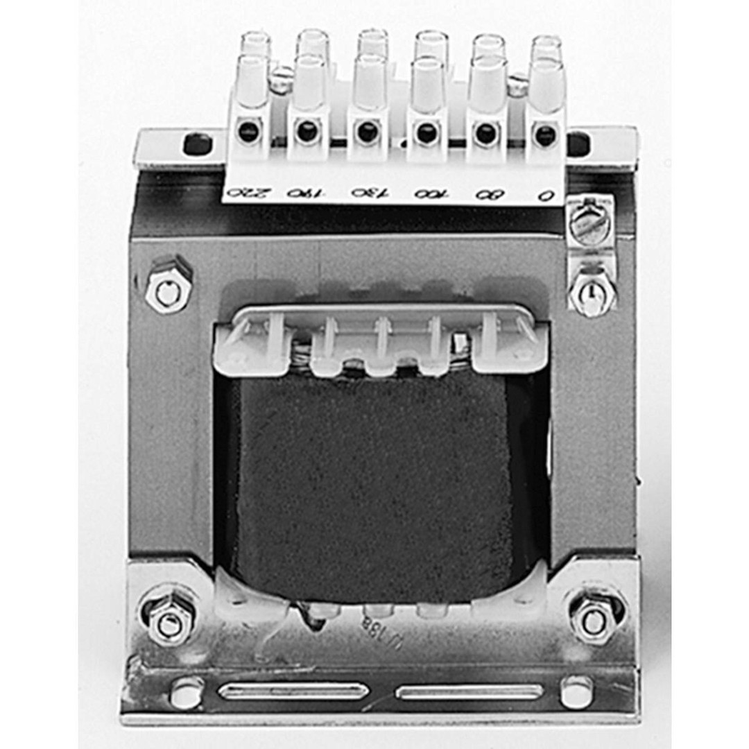 Einbautransformator ohne Gehäuse mit Fußwinkel und Klemmenleiste für 5 Spannungsabgriffe (0/80/100/130/170/230). 50/60 Hz.